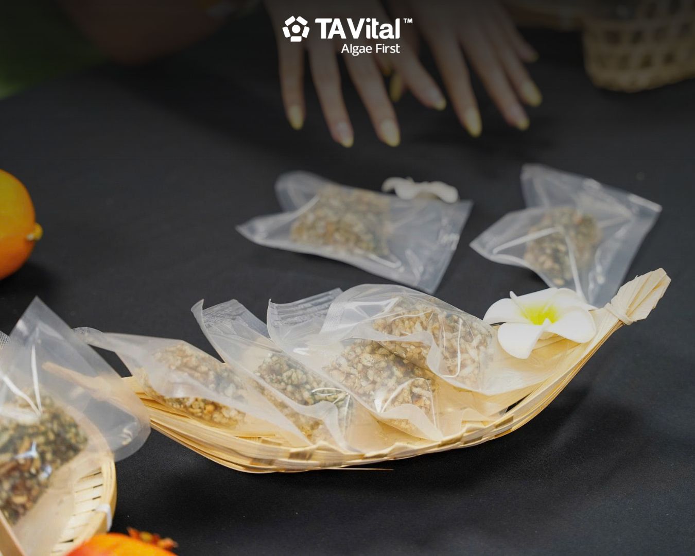Nhóm sinh viên đã giới thiệu sản phẩm mang tên “Puff n’ Green – món ăn nhẹ từ vi tảo”. Món snack sáng tạo này, phát triển từ tảo xoắn của TA Vital, đã nhận được sự quan tâm đặc biệt từ khách tham dự, đồng thời mở ra nhiều thảo luận về giá trị sức khỏe và tính ứng dụng linh hoạt của các sản phẩm từ vi tảo.